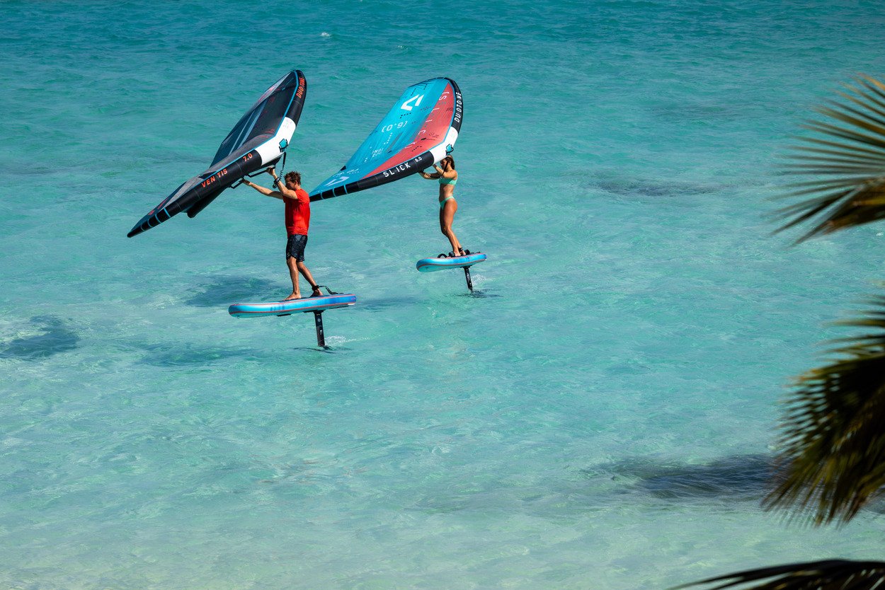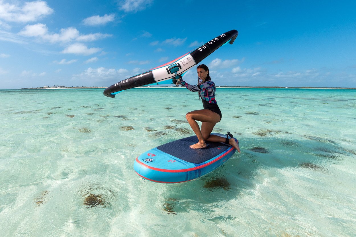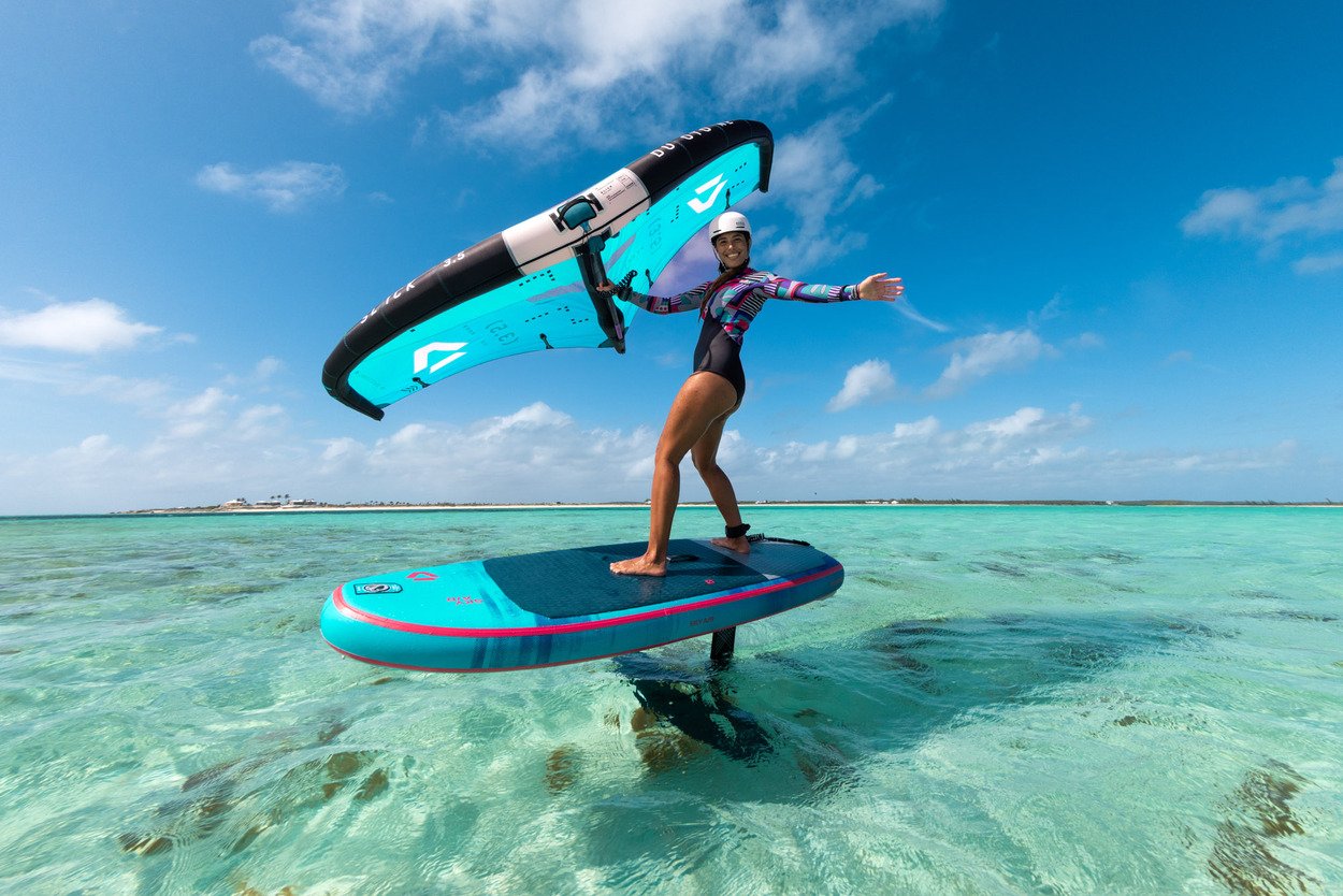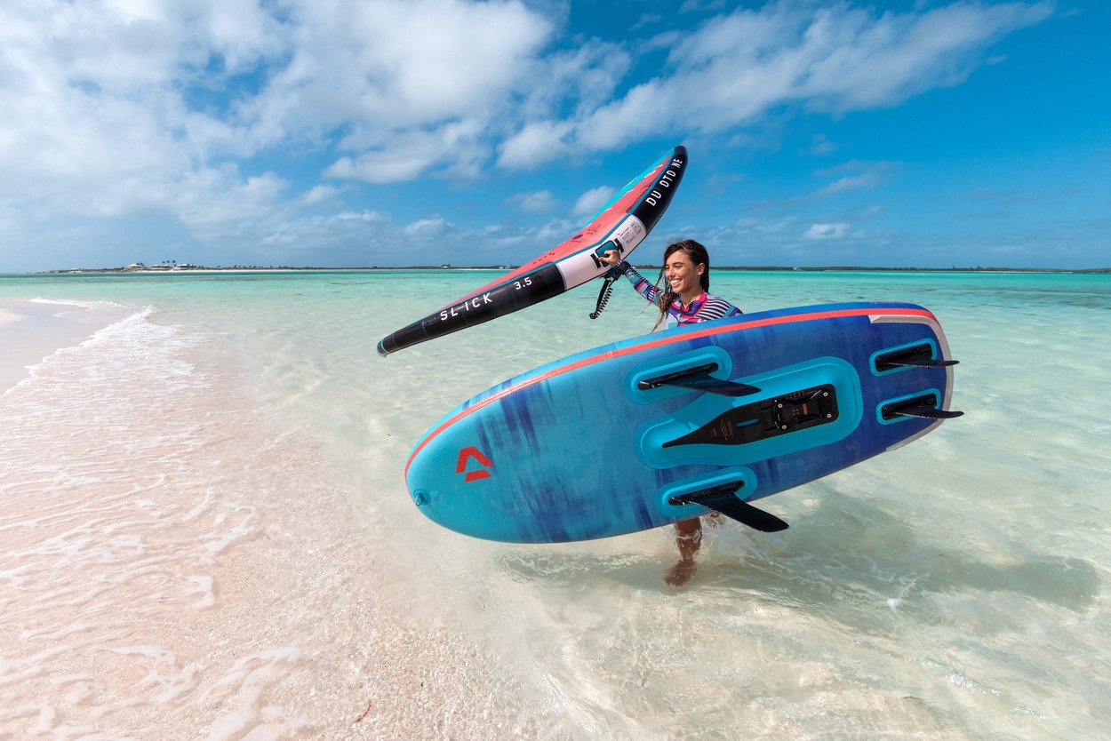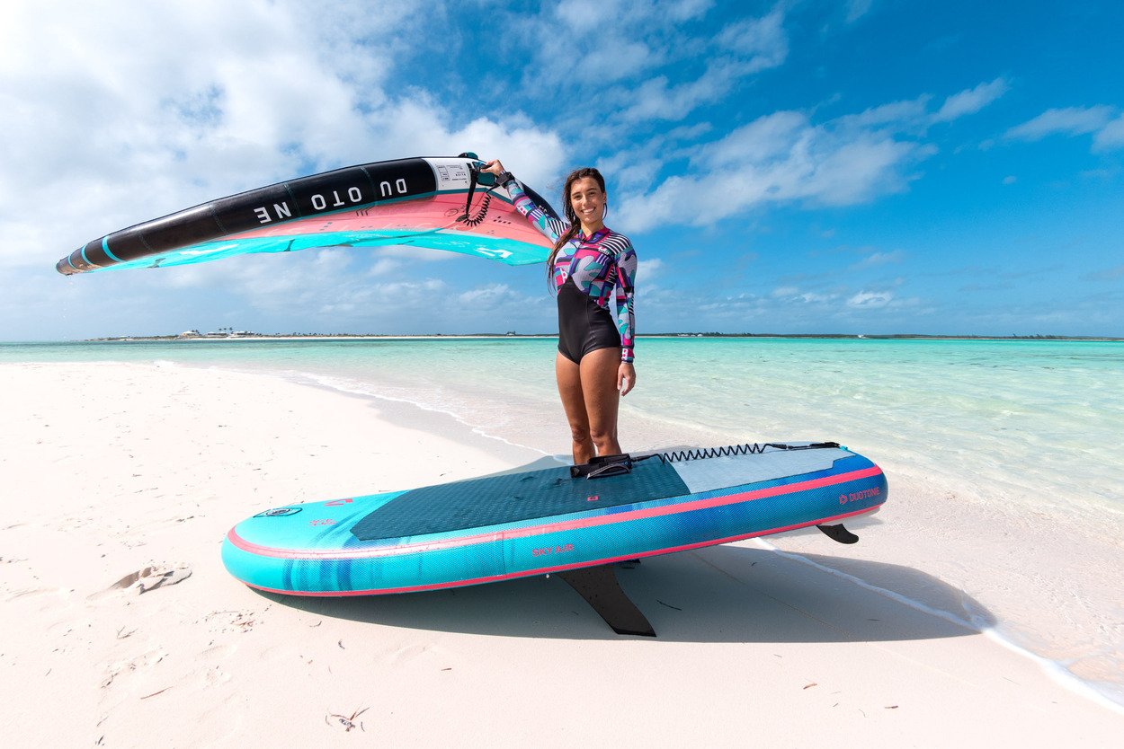 The Sky Air comes in a wheeled backpack that accommodates the board, pump, and all accessories. Additionally, it provides ample space for your wing and foil, making it the ultimate travel companion.With three models in 5’5” (105l), 5’9” (125l) and 7’2” (215l), we’ve focused the Sky Air range on the most popular sizes, of which the smaller two match style and size of the respective Sky Free. The large 7’2” comes with side and tail fins for upwind ability when non foiling to learn the basics before your first take-off.All three models feature our rigid fusion technology with solid carbon plate, including foil tracks and carrying handle which stiffens and adds stability to the stance area. A silicon rail edge offers great release onto the foil, while footstrap options, a premium bag and Multipump for Board and Wing round off this fun, durable and versatile package.